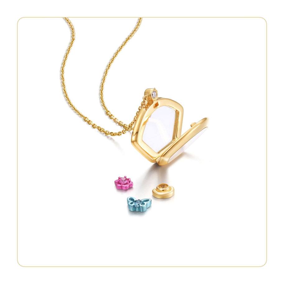 - Details: Sapphire glass opening window to insert up to six personalized wishes (One mini wish of your choice included with the necklace)